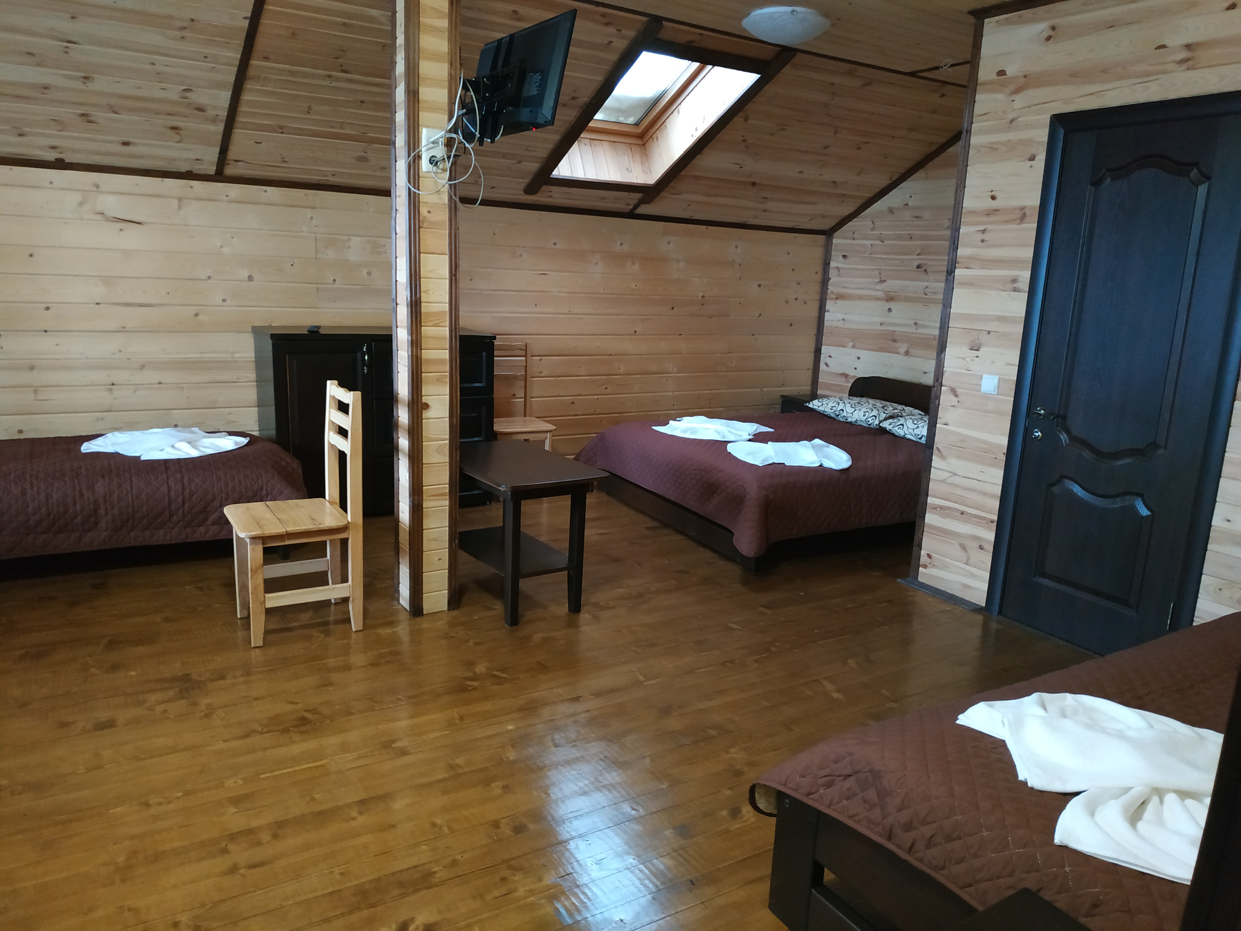 Затишний двомісний номер площею 24 м². Зручні одне двоспальне ліжко розміром 160х200 та два односпальні ліжка розміром 90x200 забезпечать комфортний сон для чотирьох осіб. Приватна ванна кімната гарантує чистоту, гігієну та особистий простір. Мінімалістичний інтерьєр та необхідіні меблі створюють атмосферу затишку. У номері є сучасний 32" телевізор, який дозволяє насолоджуватися улюбленими фільмами та передачами.